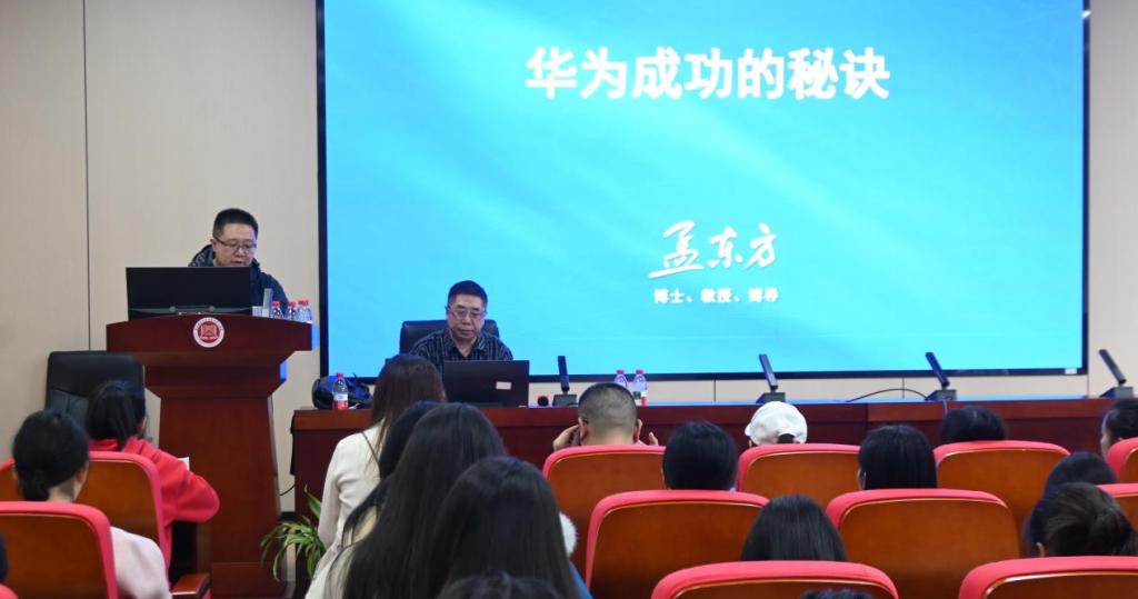 最后,孟教授孟教授勉励同学们,从华为的发展历程中汲取智慧,将“聚焦目标、共享成果、坚韧不拔”的文化精神融入个人成长与职业实践,为中国经济高质量发展贡献力量。
