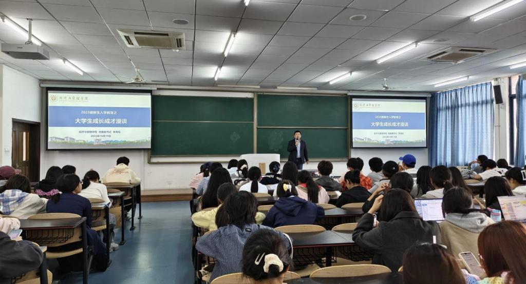 10月9日,学院在校友会堂举行“逐梦新起点,扬帆启华章”2025级师生见面会暨“书记院长谈成长”主题教育。执行院长郑景丽系统介绍学院发展历程、学科布局与人才培养成效,勉励新生筑牢学术根基、勇担时代使命。党委书记钟敏围绕“生涯九宫格”工具开展职业生涯规划教育,引导学生科学规划大学生活,实现从被动到主动的角色转变。